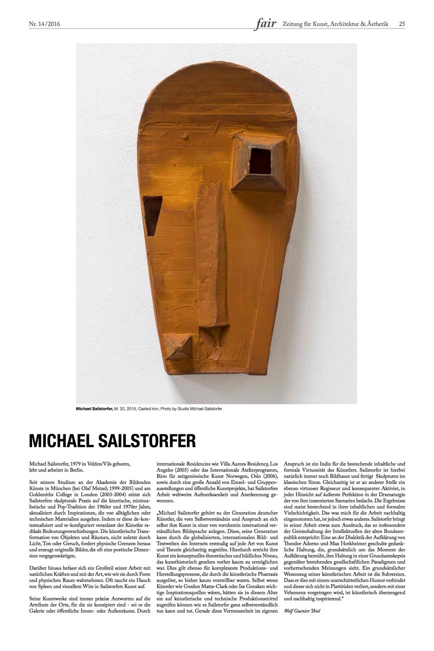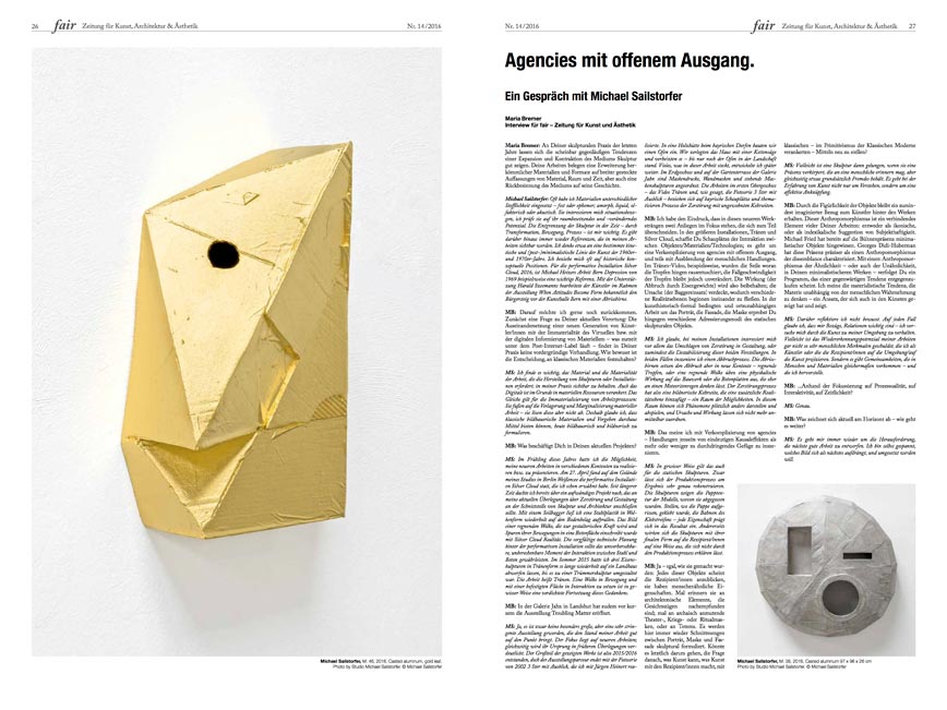 Interview for fair - Zeitung für Kunst, Architektur und Ästhetik