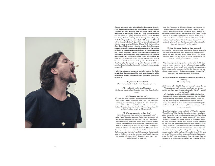 I called the artist on the phone—he was in his studio in East Berlin to talk about the progression of his work, where he gets his wilder ideas and just what the purpose of all these provocative experimental sculpture is.